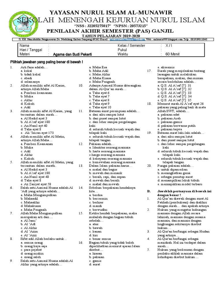 Ujian Akhir Semester (UAS) merupakan momen krusial bagi setiap siswa untuk mengukur sejauh mana pemahaman mereka terhadap materi yang telah dipelajari selama satu semester. Bagi siswa Kelas 10, mata pelajaran Pendidikan Agama Islam (PAI) memiliki cakupan materi yang luas, mulai dari akidah, akhlak, fiqih, hingga sejarah kebudayaan Islam. Mempersiapkan diri dengan baik untuk UAS PAI bukan hanya tentang menghafal, tetapi juga memahami esensi dan penerapannya dalam kehidupan sehari-hari. Salah satu cara paling efektif untuk mempersiapkan diri adalah dengan berlatih mengerjakan contoh soal UAS.